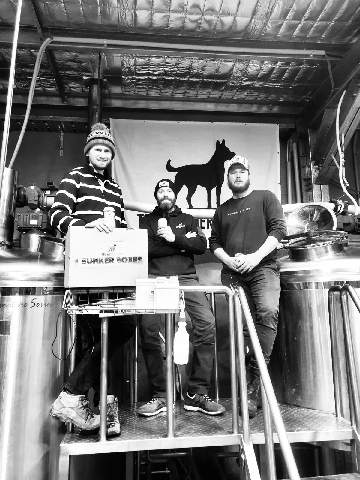 Left to right: Daniel Emery, Tom Croft and Phil Stevens of The Welder’s Dog Brewery, Bars and Bunker Box fame.